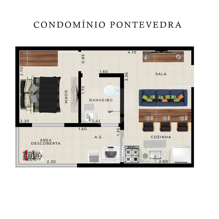 Apartamento de 45 metros área útil, Jaçanã, Living para dois ambientes, 2 dormitórios com Armá...