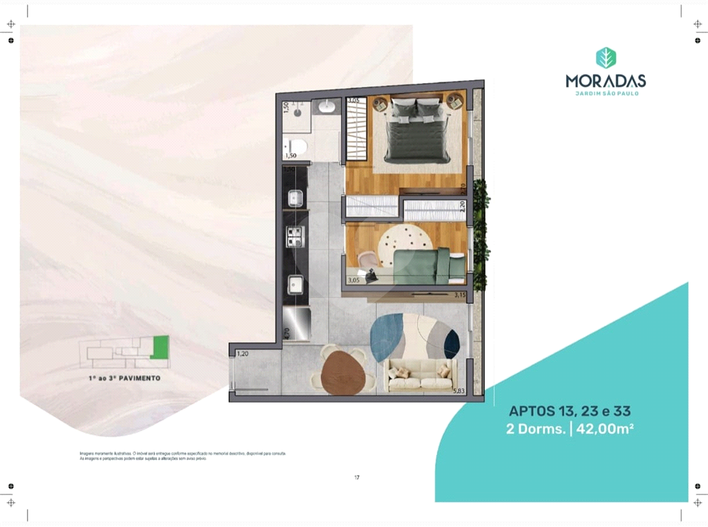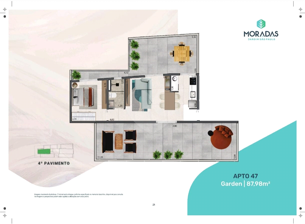 Estilo Arquitetônico Contemporâneo, terreno de 300 m², área privativa de 32 a 48 m²Studio, 1 dormitório, 2 dormitórios, Garden.1 Torre, térreo + 9 pavimentos, total de 29 unidades.Elevador social, hall social, garagem, depósitos privativos, bicicletário, lavanderia coletiva, mini mercado, salão de festas, churrasqueira (elétrica) e área de convivência. (26/02)