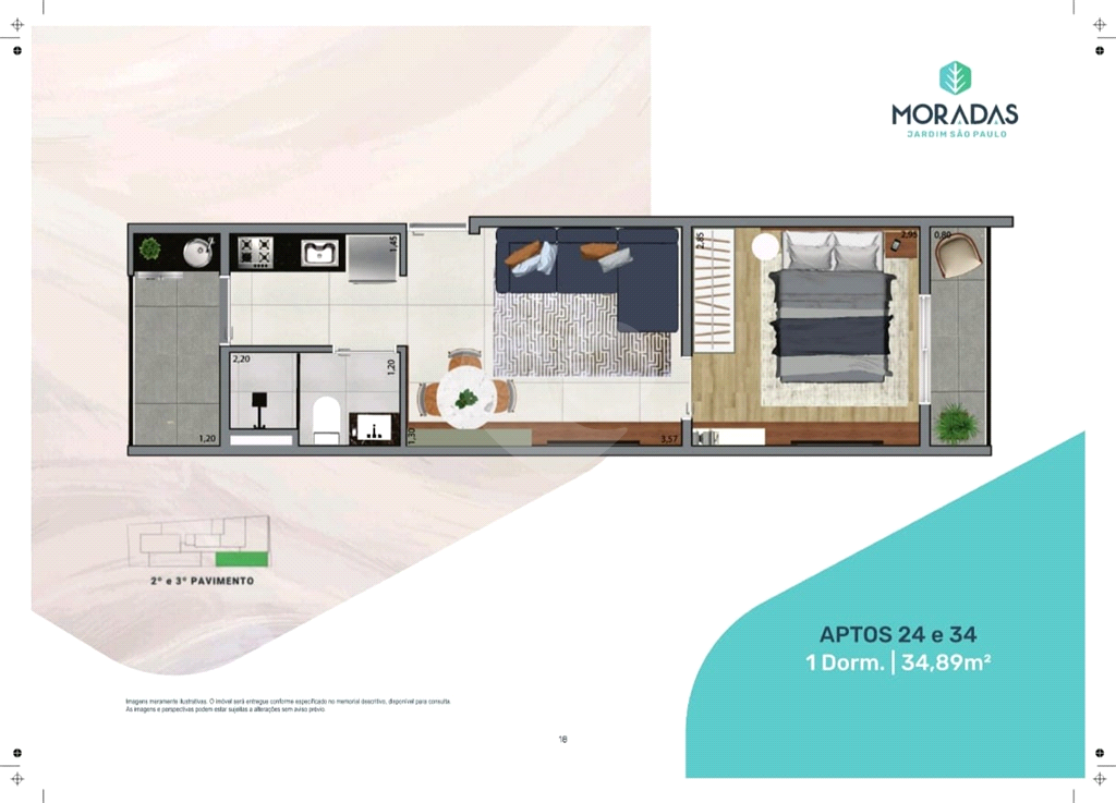 Estilo Arquitetônico Contemporâneo, terreno de 300 m², área privativa de 32 a 48 m²Studio, 1 dormitório, 2 dormitórios, Garden.1 Torre, térreo + 9 pavimentos, total de 29 unidades,Elevador social, hall social, garagem, depósitos privativos, bicicletário, lavanderia coletiva, mini mercado, salão de festas, churrasqueira (elétrica) e área de convivência. ( 26/02)