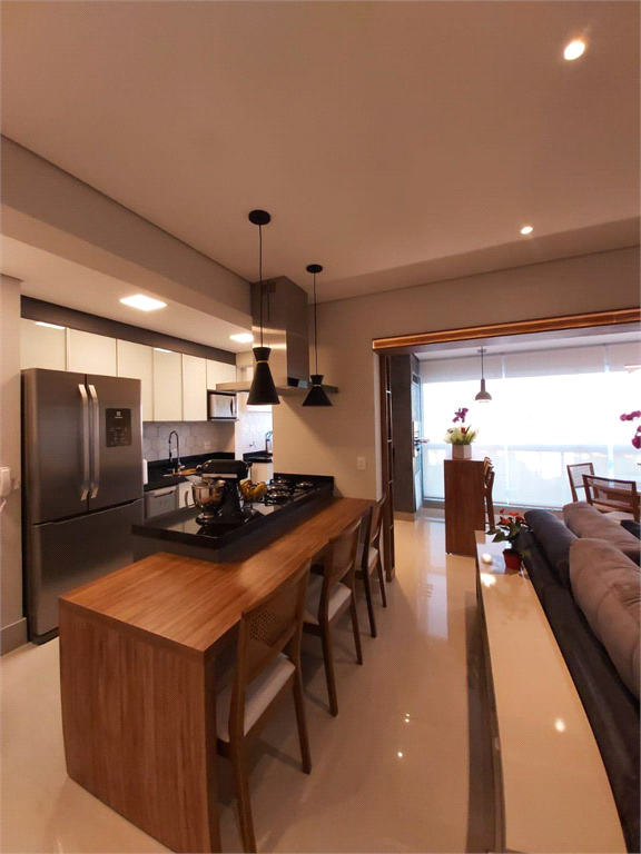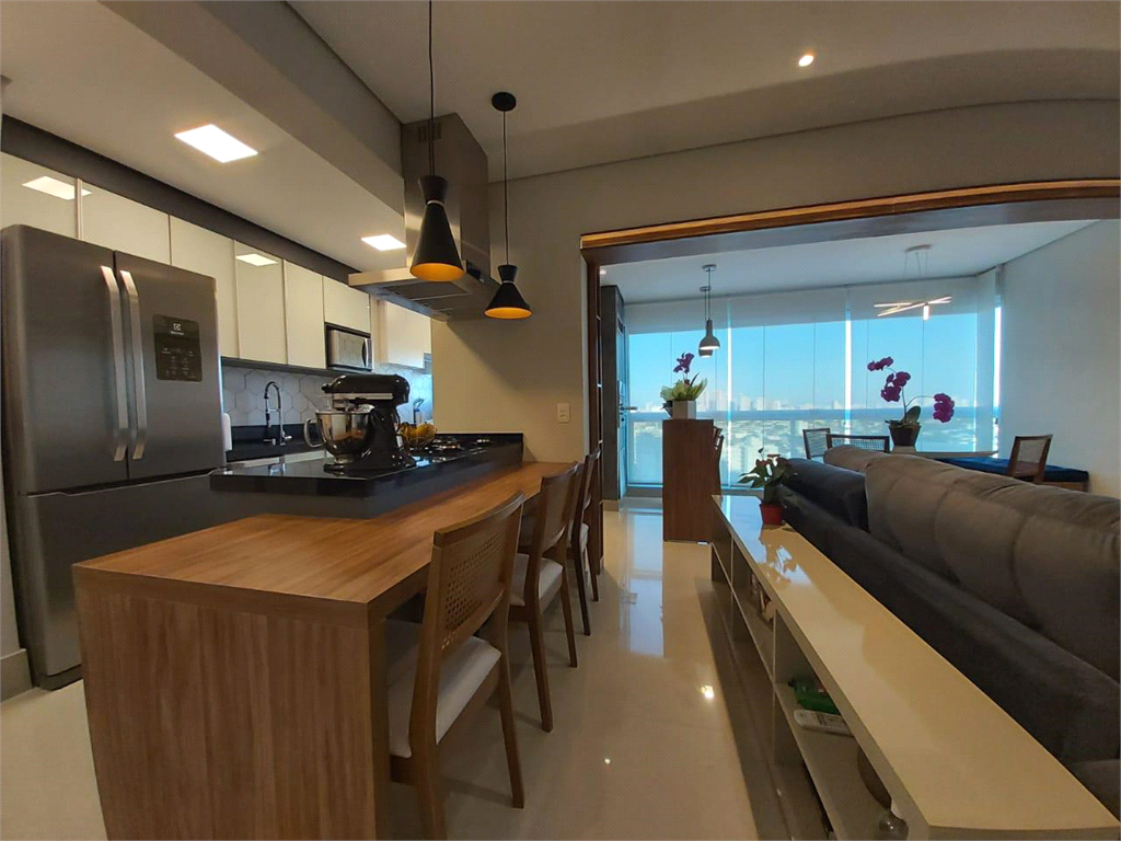 3 dormitórios sendo 1 suíte com armários planejados, banheiro social, lavabo, sala integrada com a sacada gourmet, 3 sacadas fechadas com vidro, 3 banheiros, cozinha, despensa e área de serviço.