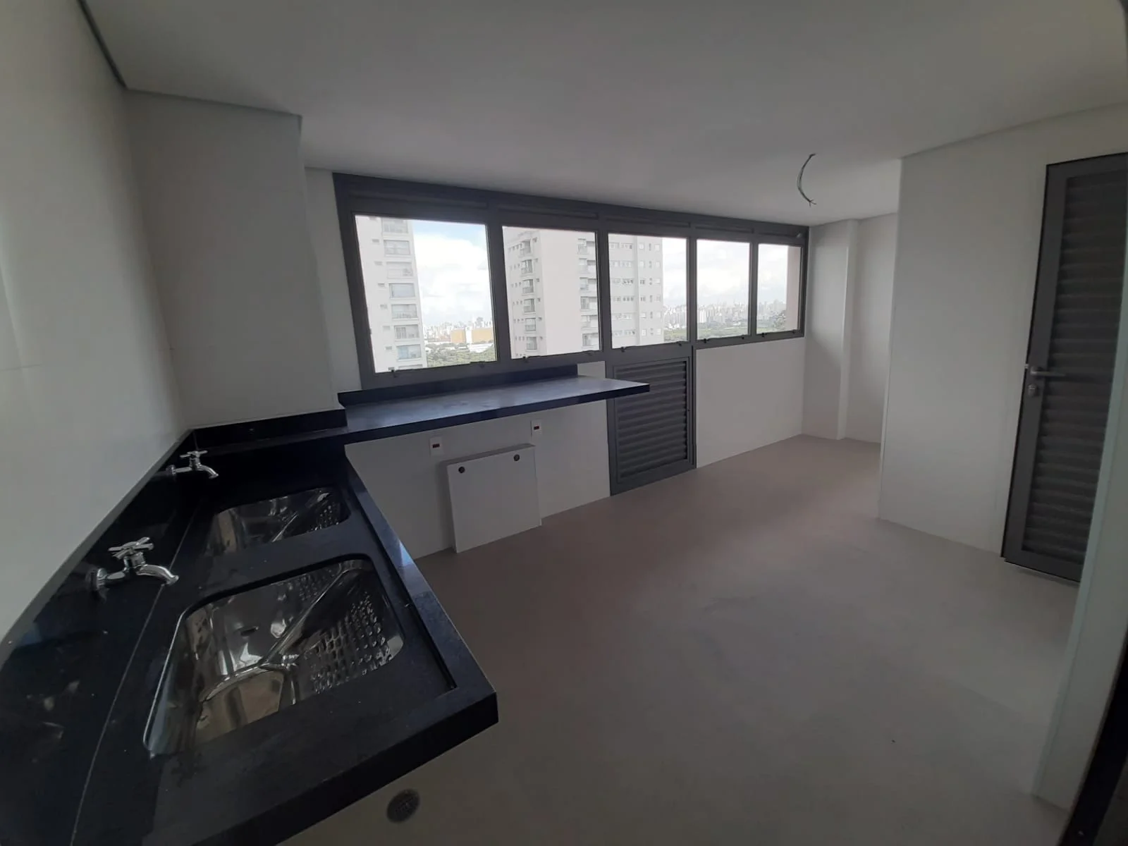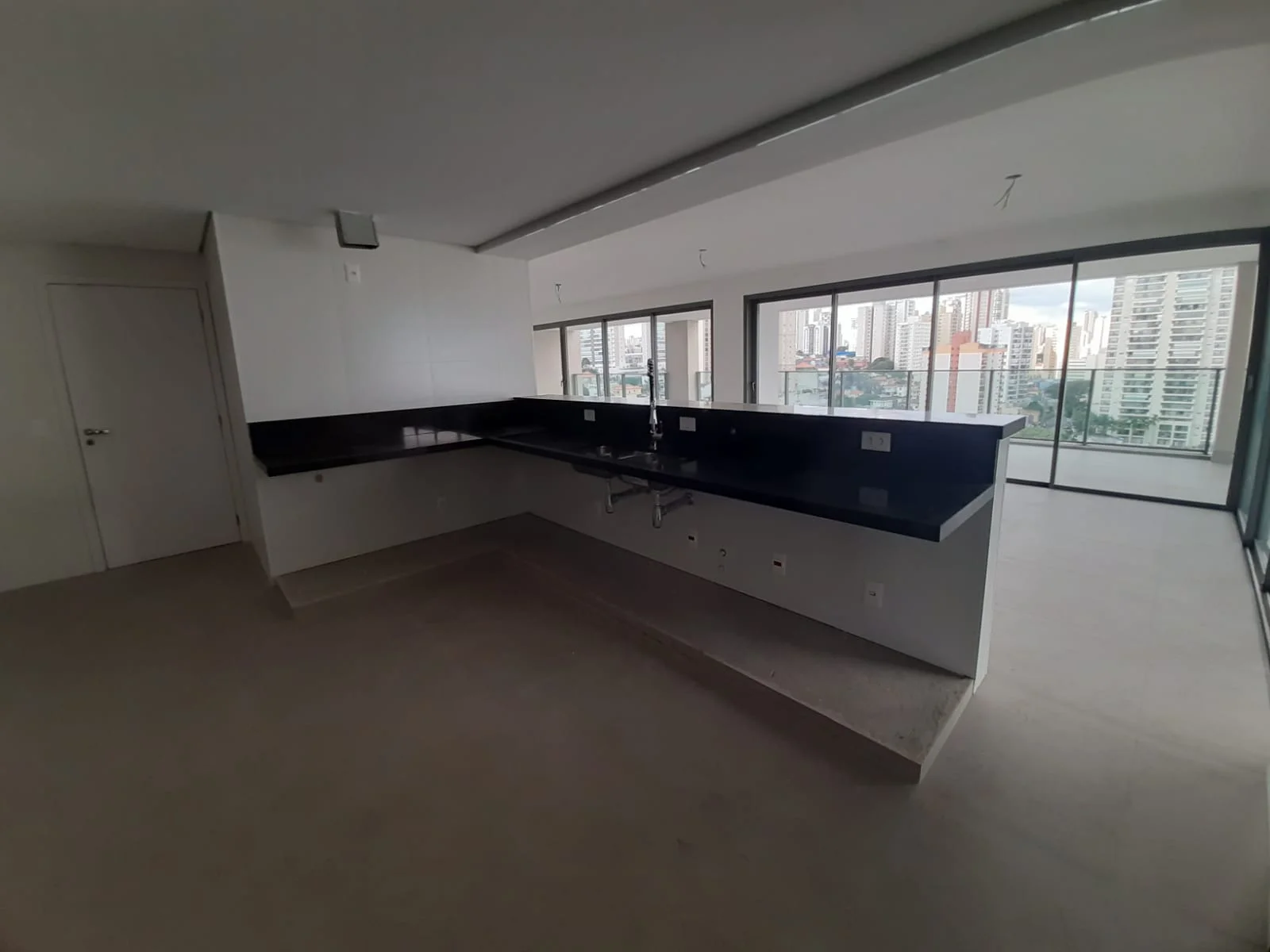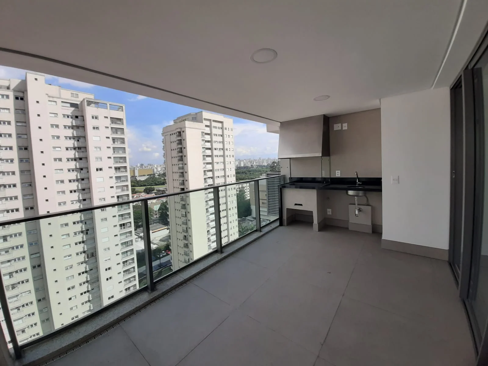 A ampla sala integrada à cozinha americana e à sacada gourmet com churrasqueira cria um ambiente perfeito para receber amigos e viver momentos únicos em família.