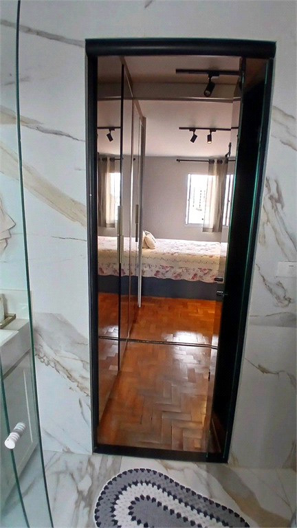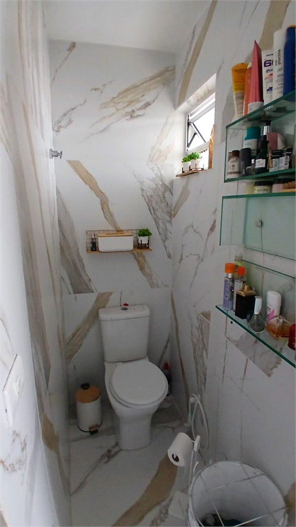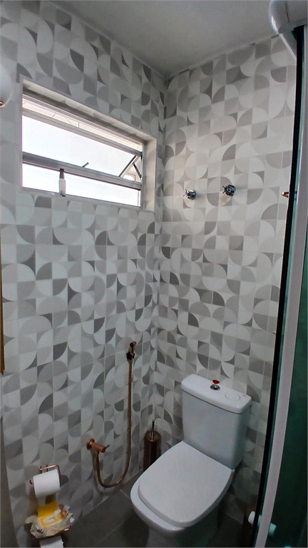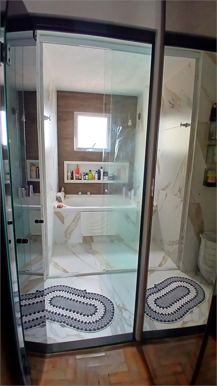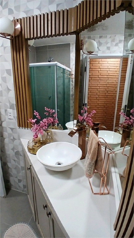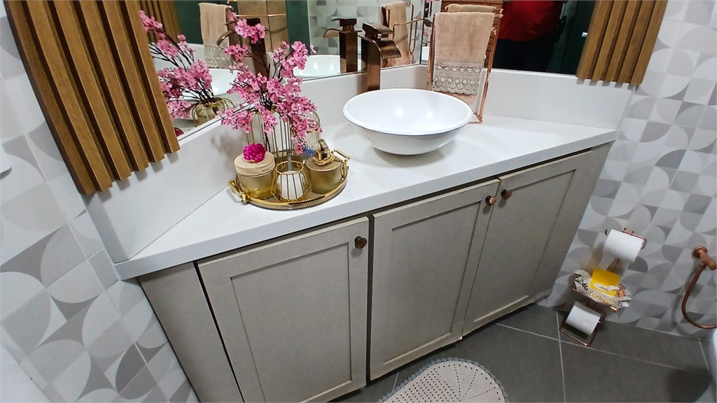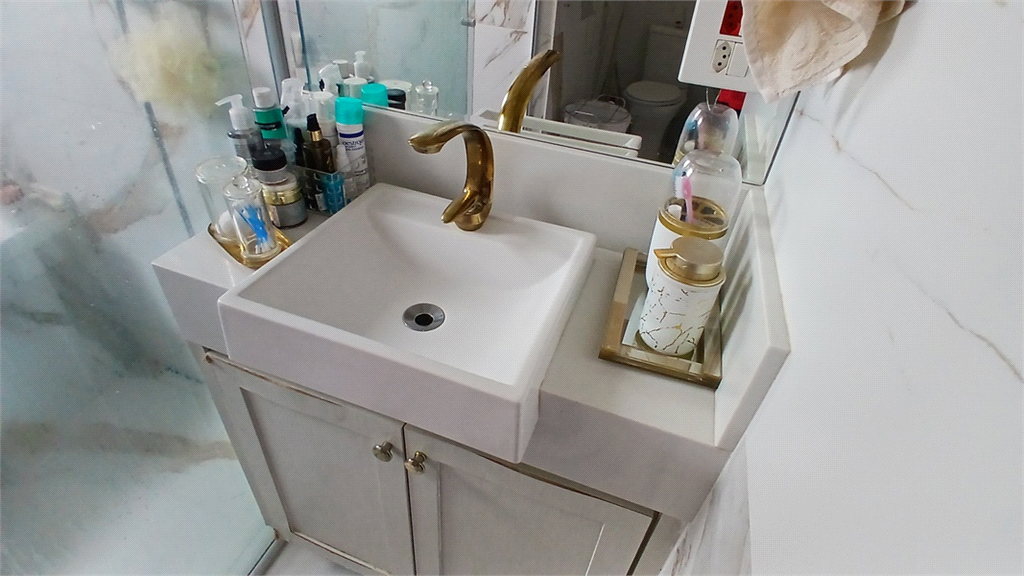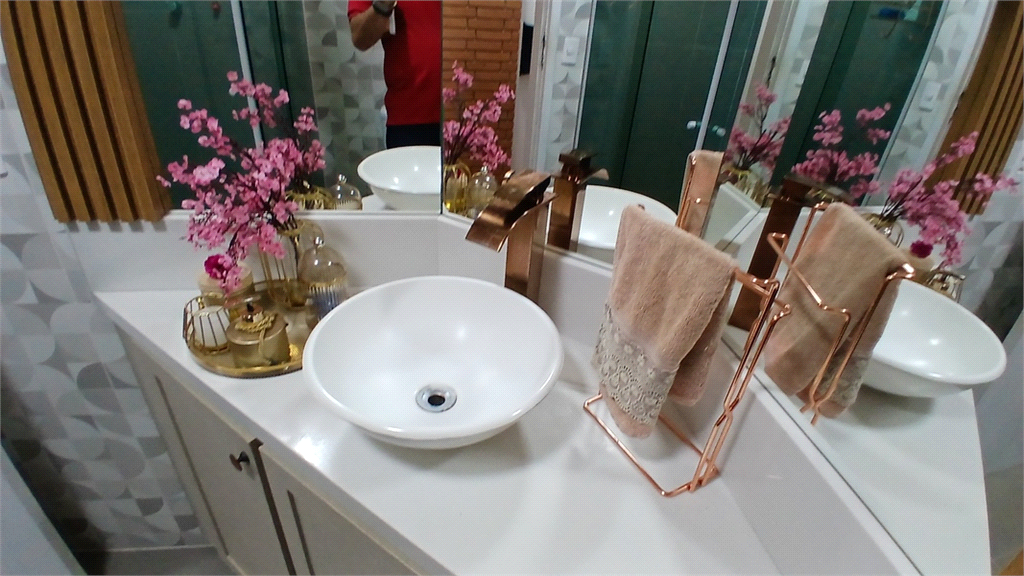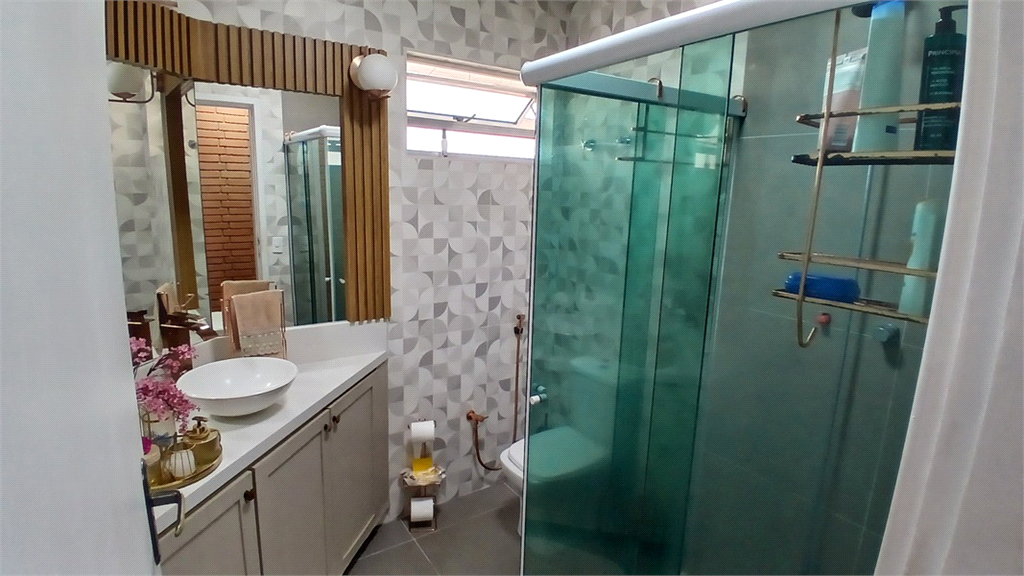 - Segundo banheiro também modernizado, que serve como lavabo, mas também com box em vidro.