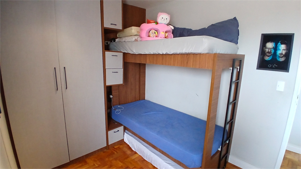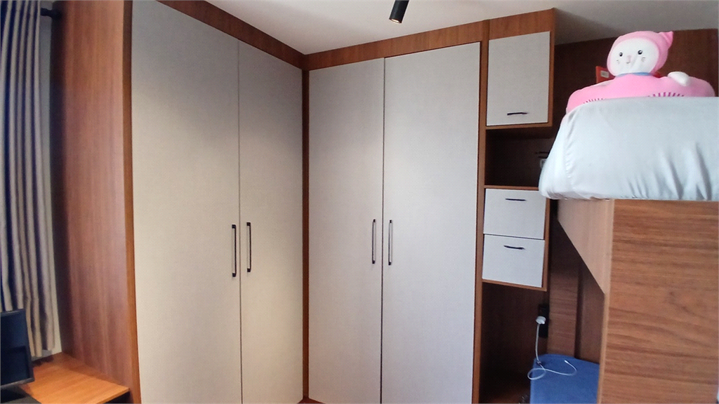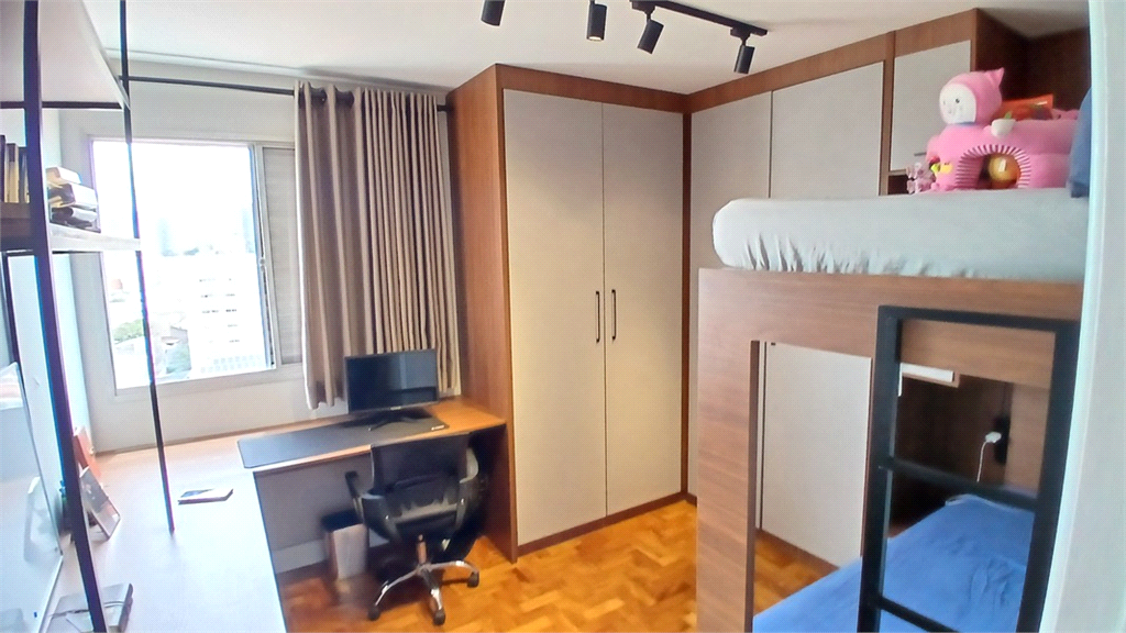 - Segundo quarto rico em armários planejados, beliche e com bancada para escritório.