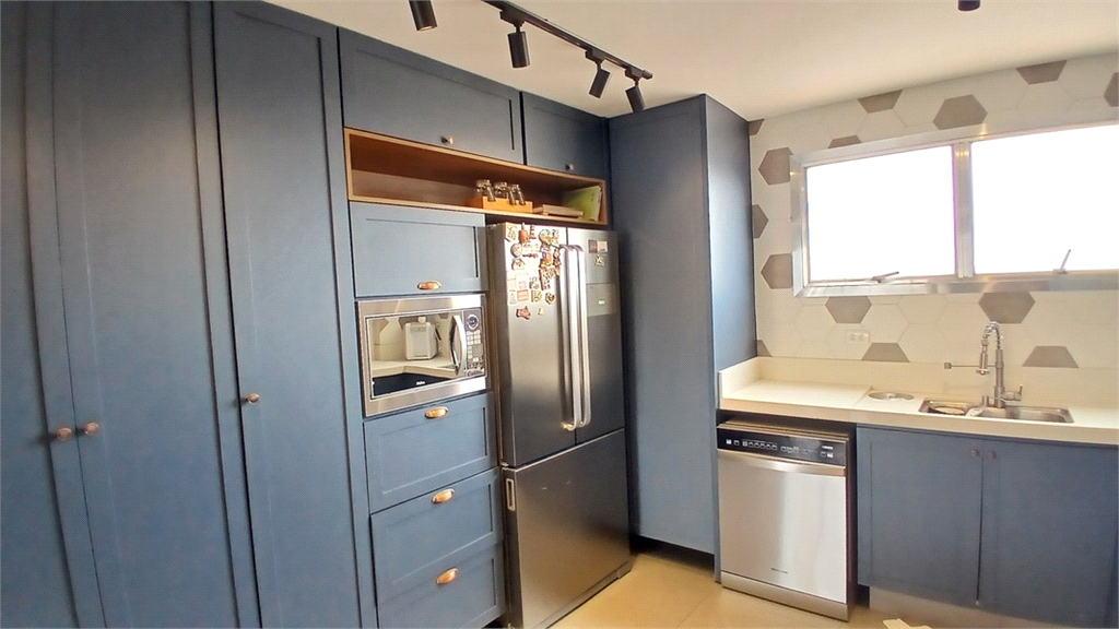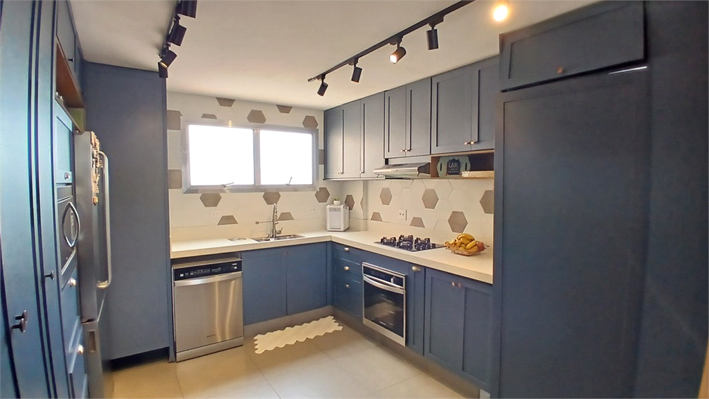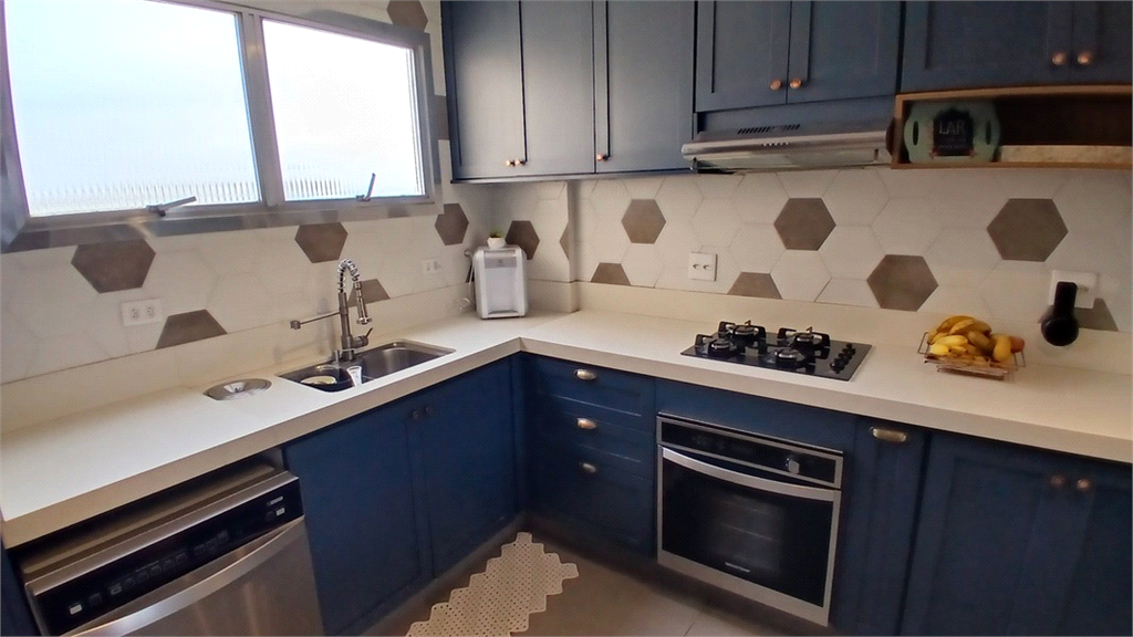 - Cozinha toda reformada e modernizada, lindíssima, feita com muito bom gosto, equipada com cooktop, forno, coifa exaustora, balcão em silestone integrada com a pia principal e iluminação direcionável.