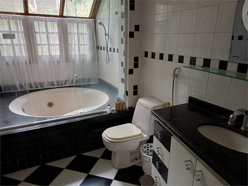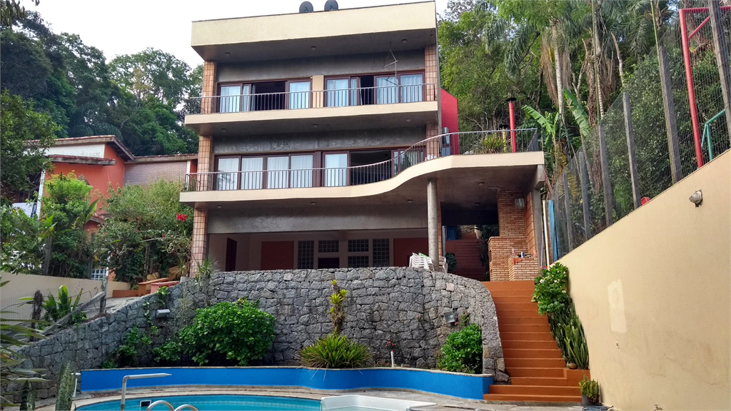 Casa de campo de alto padrão em condomínio fechado na Serra da Cantareira. Casa com 4 dormitórios sendo 2 suítes, 1 máster com closet, sala de TV, jantar e estar, dependência de empregada, varanda, 6 banheiros, churrasqueira e uma bela piscina e sauna, e 4 vagas.