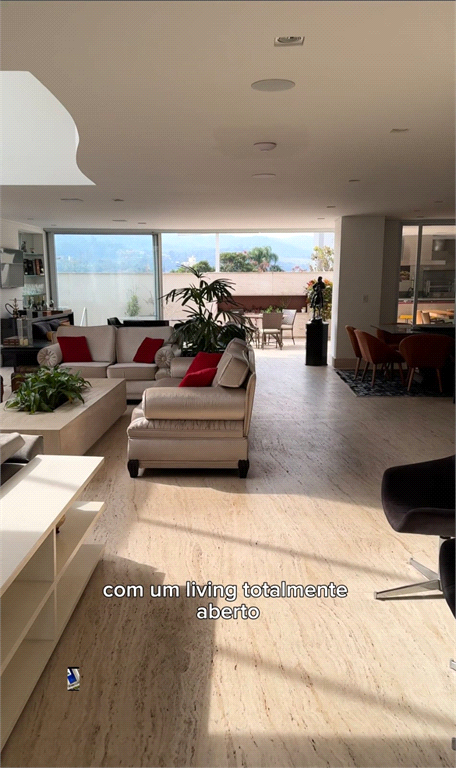 - Living aberto que integra as salas de TV e estar, proporcionando um espaço amplo e aconchegante