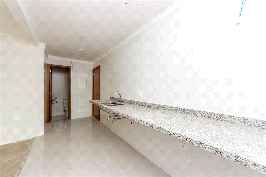 A cozinha é funcional e bem planejada, com boa área de apoio, além de área de serviço independente. O apartamento dispõe ainda de duas vagas de garagem.