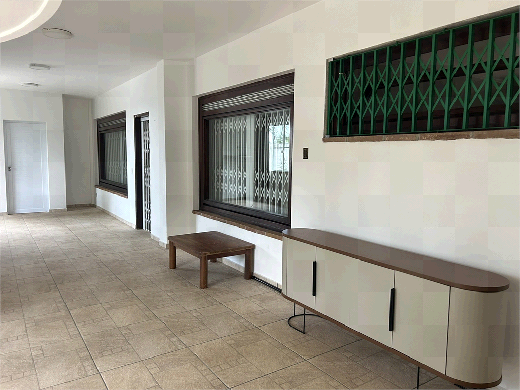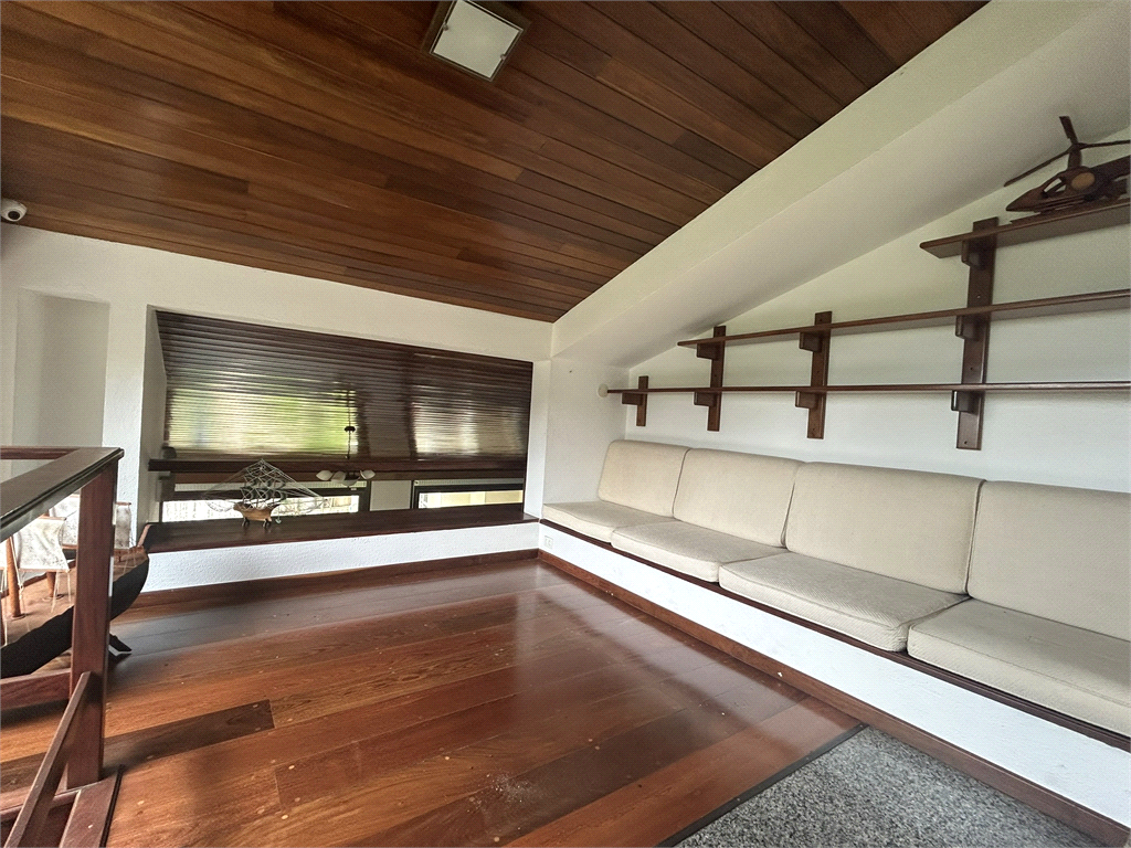 A casa principal impressiona com amplas salas distribuídas em quatro ambientes e um mezanino com lareira, além de cinco dormitórios e escritório.
